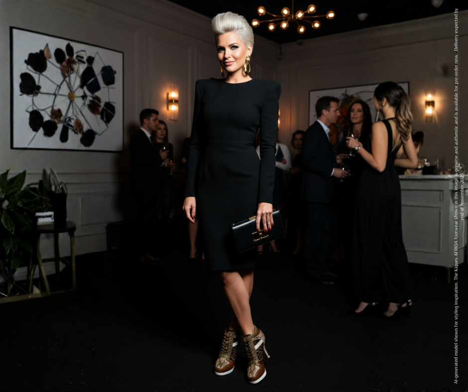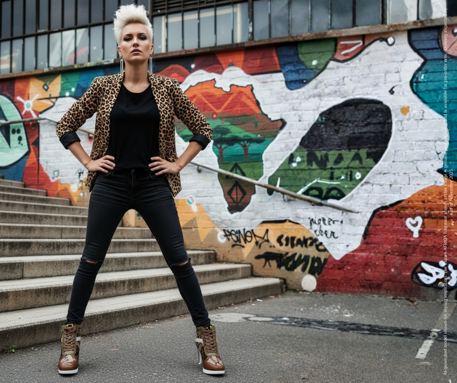 With a daring mix of cheetah print, ostrich and snake skin textures, and shimmering metallics, AFRIQA is not a heel that whispers - it roars. The street-luxe sneaker silhouette merges with a stiletto finish, creating a statement piece that blurs the line between fierce streetwear and high-fashion runway.